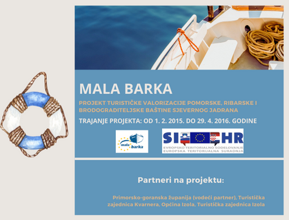 Projektom „Mala Barka“ ostvaruje se turistička valorizacija pomorske, ribarske i brodograditeljske baštine sjevernog Jadrana stvaranjem novih turističkih proizvoda.